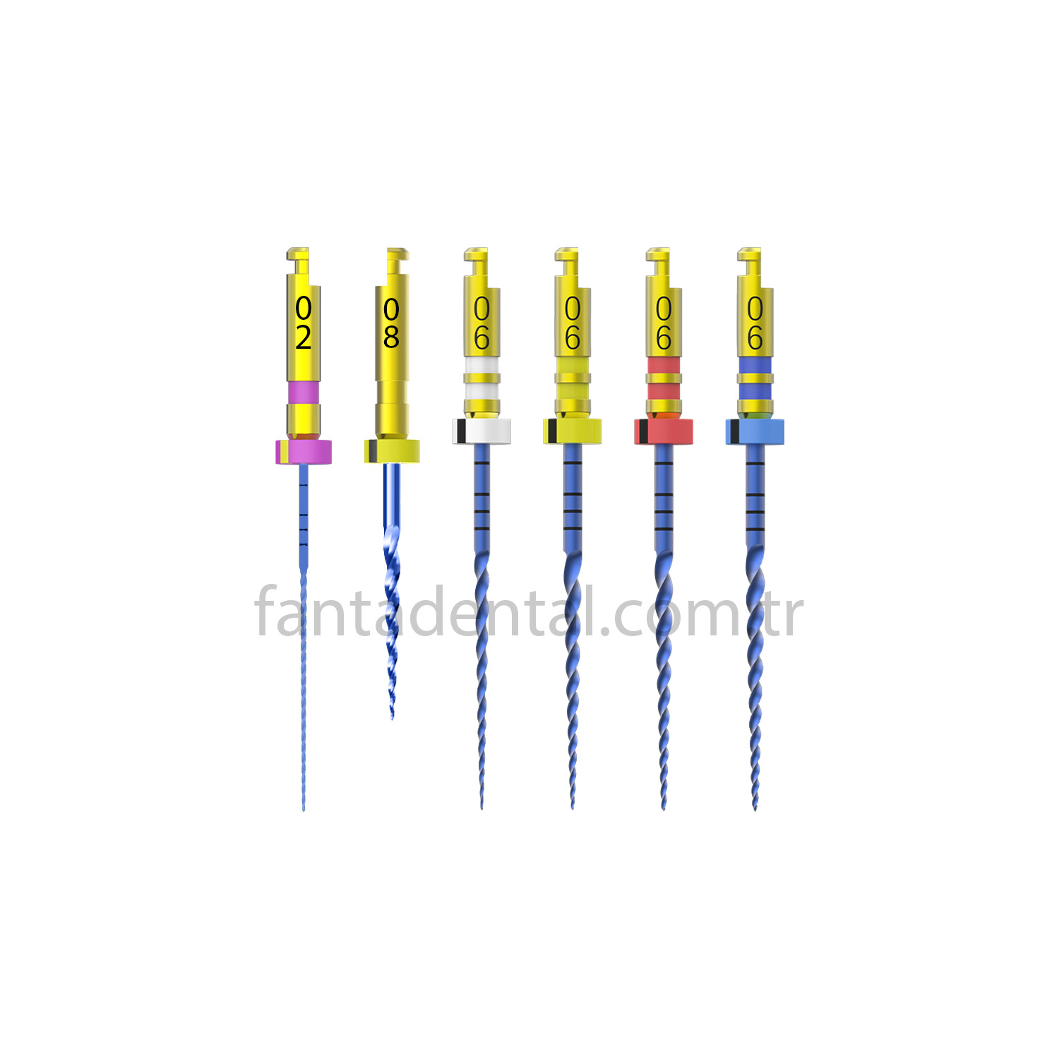- AF BLUE ROTARY eğelerin üzerindeki çift çizgi %06 konik sistem olduğunu ifade etmektedir.