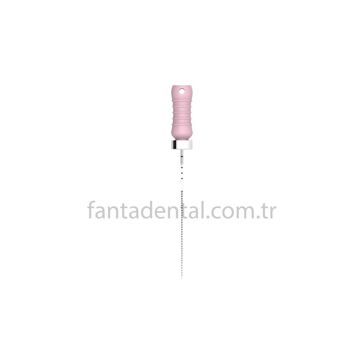 Ürün Kodu: C06-25Fanta Dental C FILE 06, 25mm (#06 çap, %2 konik); özellikle ileri derecede kalsifiye, dar ve kurvatürlü kök kanallarının kateterizasyonu ve ilk penetrasyonu için geliştirilmiş, yüksek mukavemetli paslanmaz çelik manuel kanal eğesidir.