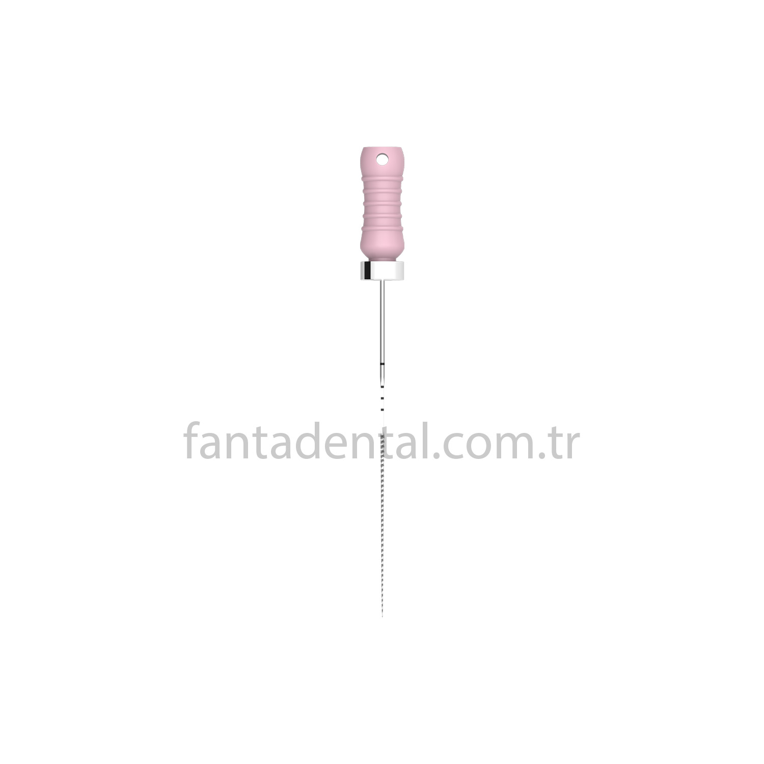 Ürün Kodu: C06-31Fanta Dental C FILE 06, 31mm (#06 çap, %2 konik); özellikle ileri derecede kalsifiye, dar ve kurvatürlü kök kanallarının kateterizasyonu ve ilk penetrasyonu için geliştirilmiş, yüksek mukavemetli paslanmaz çelik manuel kanal eğesidir.