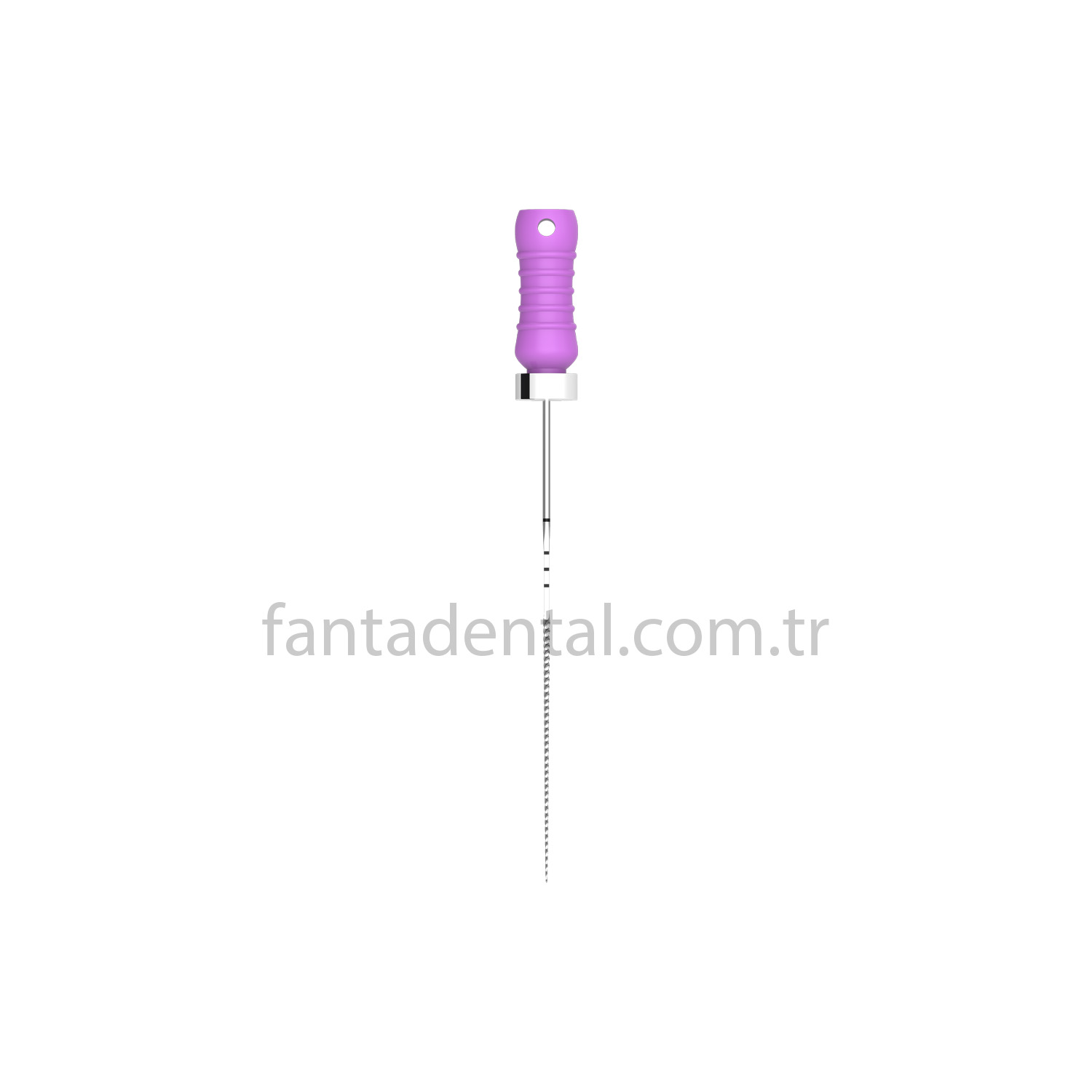 Ürün Kodu: C10-31Fanta Dental C FILE 10, 31mm (#10 çap, %2 konik); özellikle ileri derecede kalsifiye, dar ve kurvatürlü kök kanallarının kateterizasyonu ve ilk penetrasyonu için geliştirilmiş, yüksek mukavemetli paslanmaz çelik manuel kanal eğesidir.