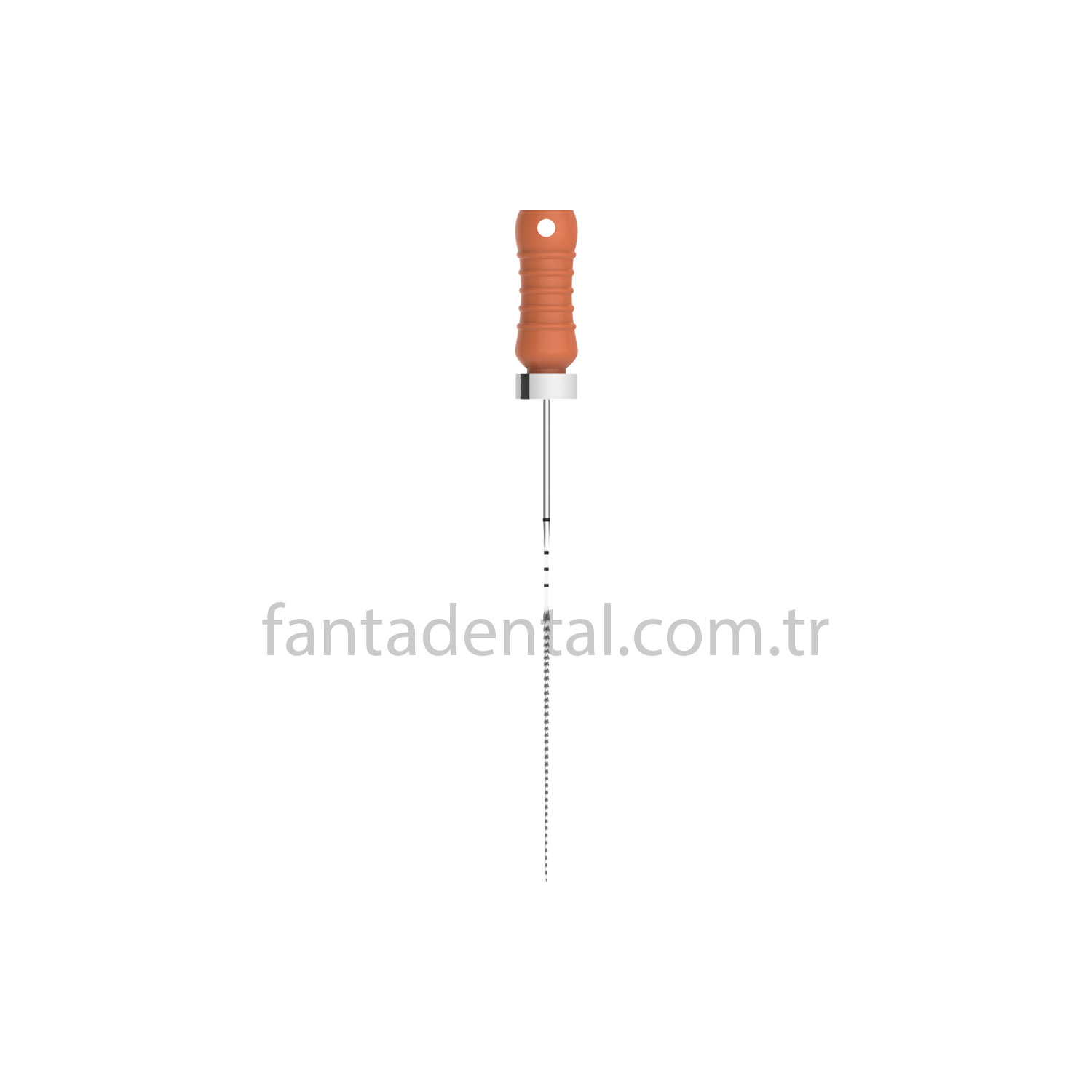 Ürün Kodu: C12-31Fanta Dental C FILE 12, 31mm (#12 çap, %2 konik); özellikle ileri derecede kalsifiye, dar ve kurvatürlü kök kanallarının kateterizasyonu ve ilk penetrasyonu için geliştirilmiş, yüksek mukavemetli paslanmaz çelik manuel kanal eğesidir.