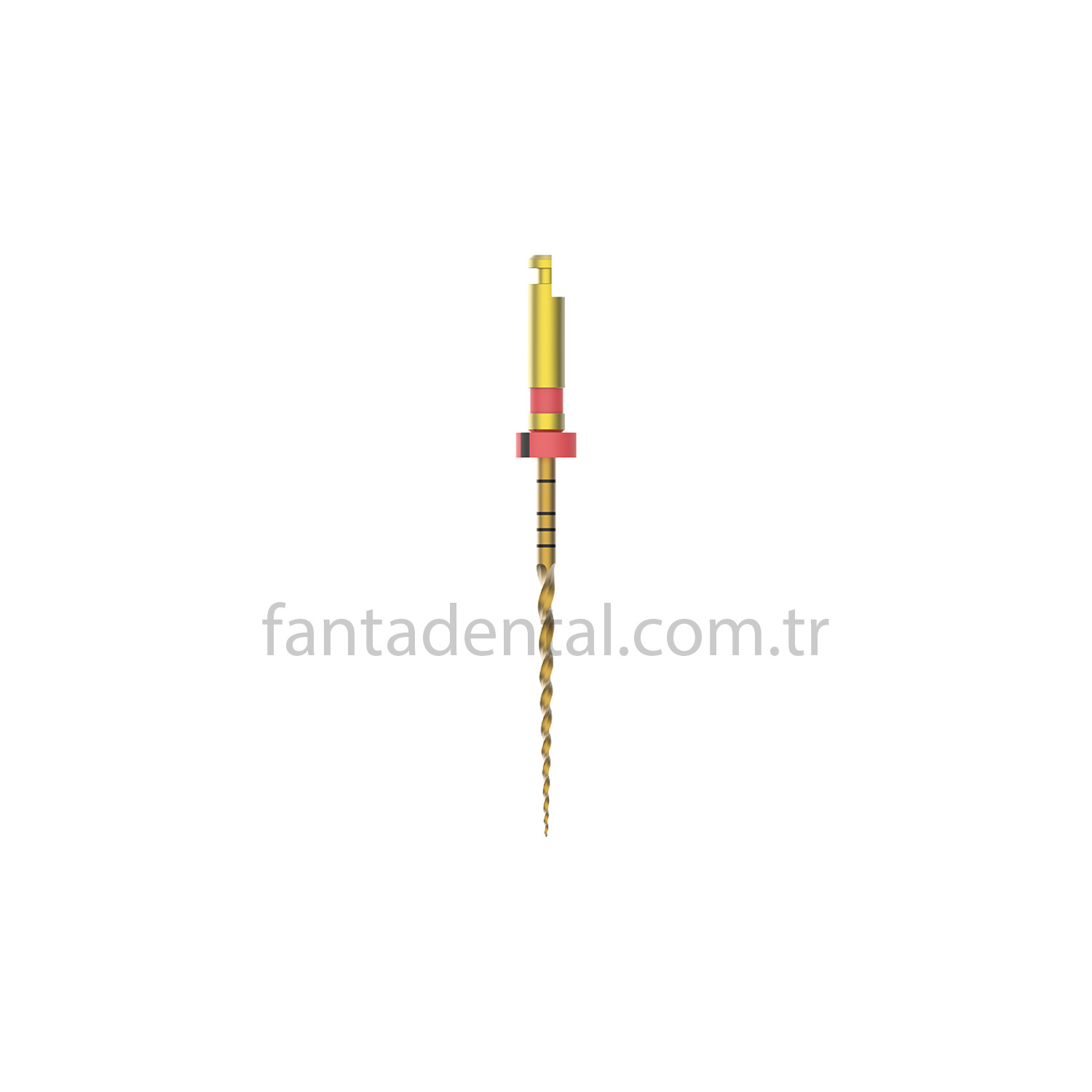Ürün Kodu: ATAKAN 25-04Fanta Dental AF PRO GOLD, 25-04, 25mm (25 çap, %04 konik); tam şekillendirme öncesi kritik kontrol sağlar. Eğimli ve kalsifiye kanallarda ileri esneklik performansı sunar.