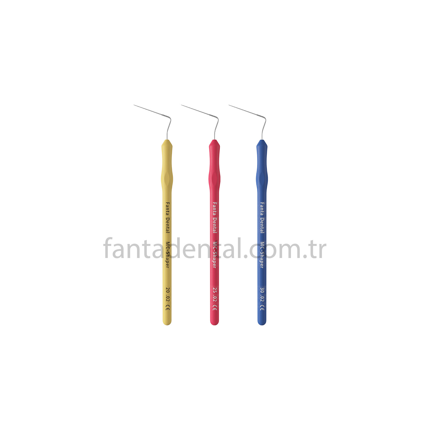 Ürün Kodu: SHAPERFanta Dental MC-SHAPER, kanal tedavisi sırasında özellikle ulaşılması zor ve kompleks anatomili bölgelerde etkin temizlik ve şekillendirme sağlamak amacıyla geliştirilmiş manuel endodontik el aletidir. Klasik stainless steel K-file ve H-file sistemlerine alternatif olarak tasarlanan bu ürün, özel yiv yapısı sayesinde daha kontrollü, güvenli ve verimli kanal preparasyonu sunar. Ergonomik tasarımı ve tekrar kullanılabilir yapısı ile klinik pratikte hız ve konfor sağlar.